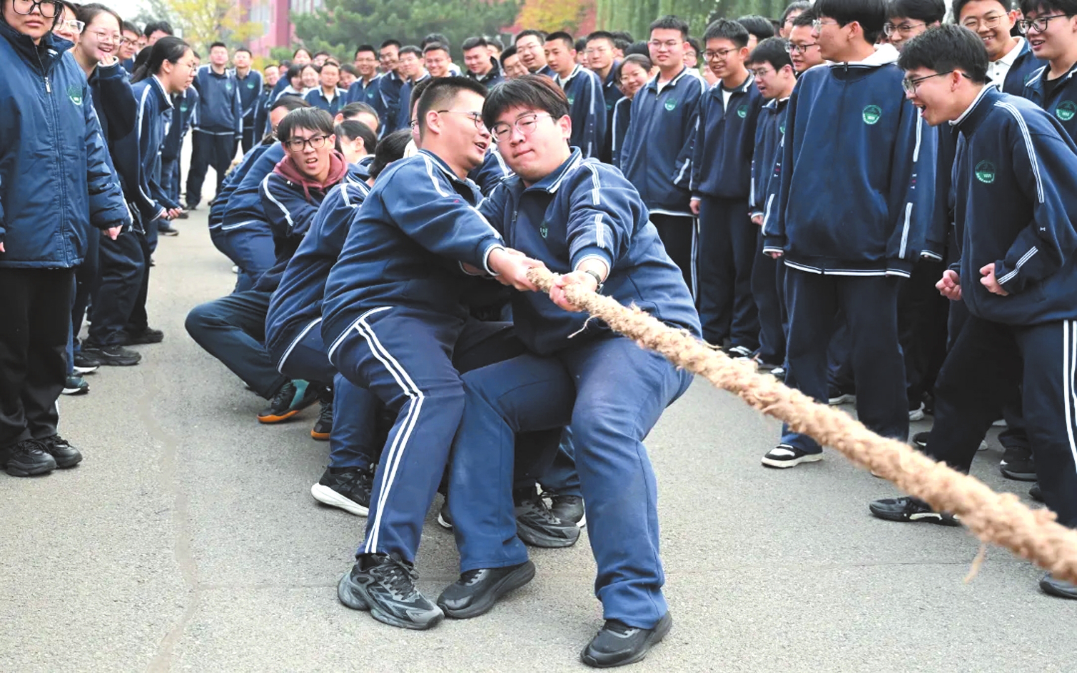 近日,忻州實(shí)驗(yàn)中學(xué)第22屆校園文化藝術(shù)體育節(jié)拔河比賽舉行。比賽哨聲一響,賽場瞬間沸騰。參賽隊(duì)員們緊握長繩,雙腳蹬地,身體后傾,每一個(gè)動作都凝聚著集體的力量與智慧。老師們化身為全情投入的啦啦隊(duì)長,揮動雙臂,聲嘶力竭地為隊(duì)員們指揮節(jié)奏;各班同學(xué)則自發(fā)組成陣容強(qiáng)大后援團(tuán),將現(xiàn)場氛圍一次次推向高潮。 (記者 馮偉倫攝)