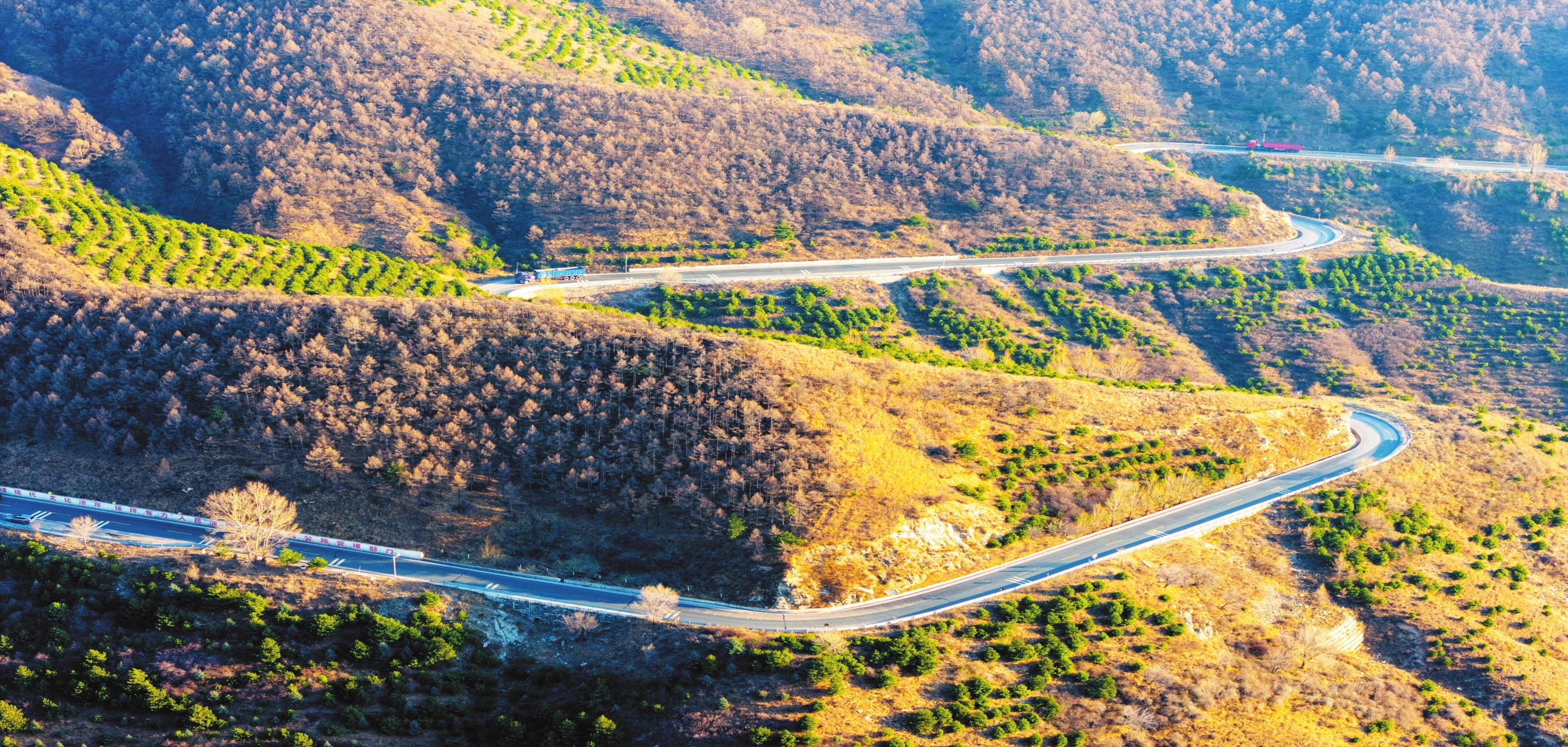 近日,落日余暉映照下的雁門關(guān)險(xiǎn)路十八彎,顯得格外壯美。它不僅是208國(guó)道穿越雁門山的關(guān)鍵路段,也曾是翻越雁門天險(xiǎn)的主要通道。這段險(xiǎn)路位于代縣以北約20公里的雁門山中,綿延約6.8公里,密集分布著18個(gè)主體急彎,道路海拔落差高達(dá)400余米。(王晉東攝)