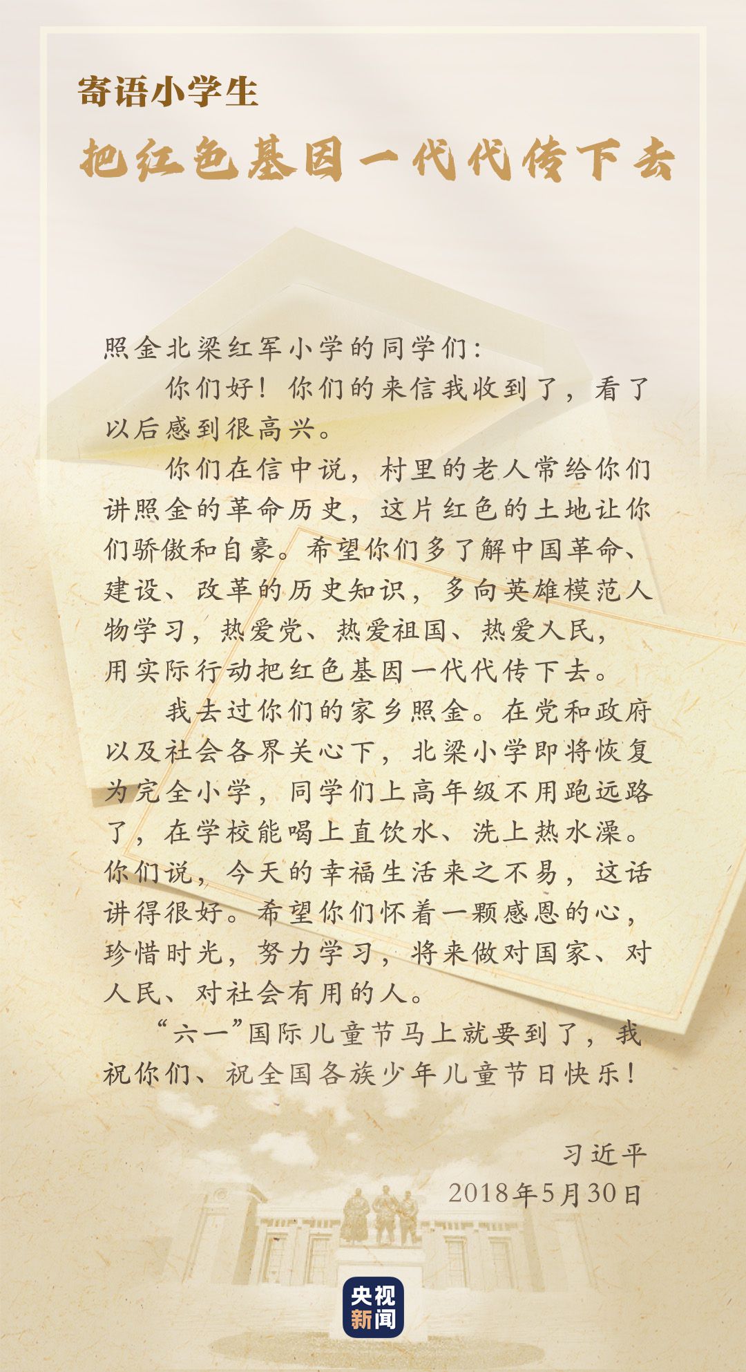 “教育很重要。革命老區(qū)、貧困地區(qū)要脫貧致富,從根兒上還是要把教育抓好,不能讓孩子輸在起跑線上。”總書記心里一直裝著老區(qū)人民,尤其關(guān)心下一代成長,要求把發(fā)展教育作為擺脫貧困的重要方式。 照金是陜甘邊革命根據(jù)地的中心。以前的北梁紅軍小學(xué)只有幾間土坯房,沒有自來水沒有暖氣,學(xué)生上學(xué)要爬坡過河走十幾里山路,冬天還得自帶小火盆取暖。如今,這里發(fā)生了翻天覆地的變化:路面硬化了,有了校車接送,孩子們上學(xué)不再難;學(xué)校有了自來水,師生喝上了清潔的直飲水;高年級學(xué)生有了宿舍,還能夠洗上熱水澡;學(xué)校還新招了一大批青年教師,個(gè)個(gè)都是大學(xué)生…… 校舍變新了,師資變強(qiáng)了,不變的是代代相傳的紅色基因??倳浀幕匦?,激勵(lì)著這里的孩子傳承紅色基因,回報(bào)社會,用光熱溫暖更多人,把愛傳遞出去。 △照金北梁紅軍小學(xué)學(xué)生 筆墨凝結(jié)真情意,鴻雁傳書表實(shí)感??倳浀恼佌佋捳Z、殷殷期待,激勵(lì)著全國人民齊心協(xié)力打贏脫貧攻堅(jiān)戰(zhàn),譜寫美好生活新篇章。 視覺丨楊麗璇 資料丨張亞楠 (責(zé)任編輯:蔡文斌) |