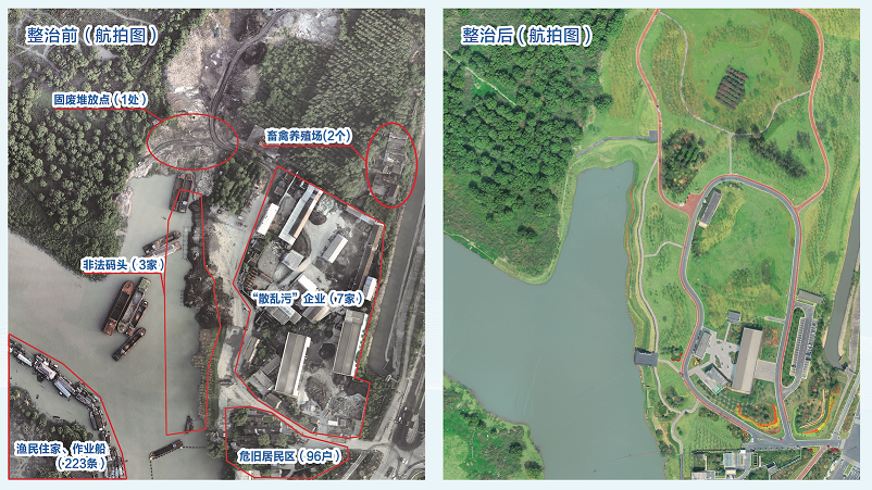 薛家洼生態(tài)園地處長(zhǎng)江東岸,占地986畝,曾經(jīng)生態(tài)環(huán)境問(wèn)題非常突出,原有非法碼頭3家,散亂污企業(yè)7家,固廢堆場(chǎng)1處,規(guī)?;笄蒺B(yǎng)殖場(chǎng)2個(gè),危舊民居96戶(hù),??繚O民作業(yè)船、住家船223條?!扒缣煲簧砘遥晏煲簧砟唷?,這是曾經(jīng)薛家洼的真實(shí)寫(xiě)照。