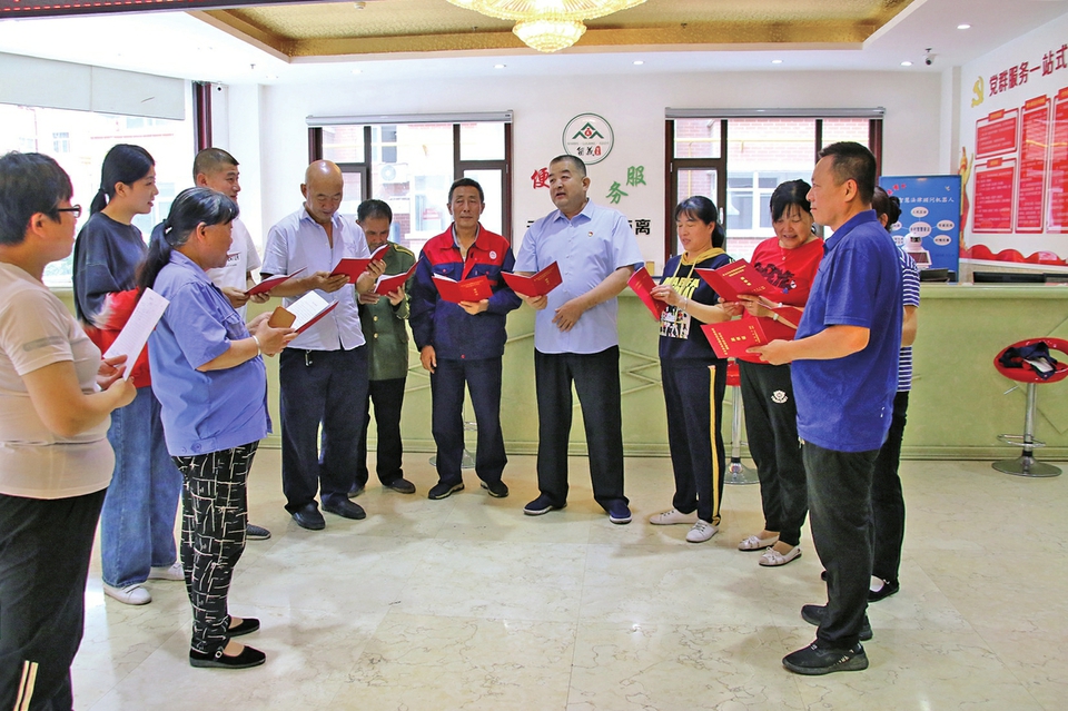 領(lǐng)到股權(quán)證的留義村村民。本報記者王秀娟攝