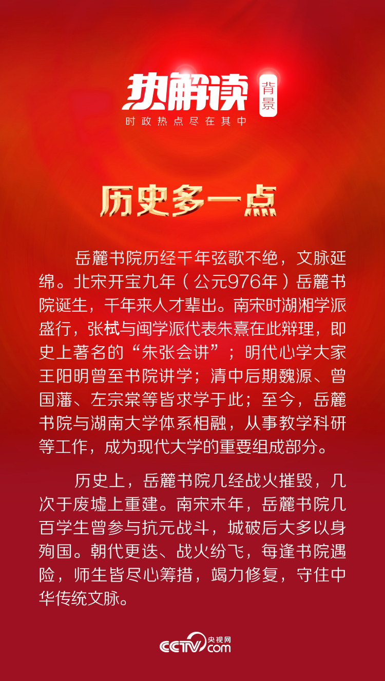 湖南大學(xué)岳麓書院外,習(xí)近平總書記深情祝福在場師生:“你們一定會(huì)不負(fù)時(shí)代的重托,繼續(xù)傳承湖湘之地這樣的一種精神,經(jīng)世致用,為中華民族偉大復(fù)興貢獻(xiàn)你們的所有才智。愿大家不負(fù)青春,不負(fù)韶華,形成成熟的人生觀、價(jià)值觀,走好人生的路,系好人生的第一顆紐扣?!爆F(xiàn)場掌聲經(jīng)久不息。