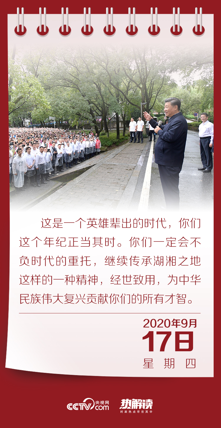 離開校園時(shí),習(xí)近平總書記深情地對師生們說:“岳麓書院一直是我有牽掛,這個(gè)學(xué)院在我們的傳統(tǒng)文化中的地位、影響,我還是很有感觸的?!笨倳浱貏e剖析了“惟楚有材,于斯為盛”這副古聯(lián)背后的深意:“于斯為盛,我的體會(huì)一個(gè)就是我們湖南人才濟(jì)濟(jì),代有才人出啊,有報(bào)效祖國的棟梁之材。再有呢,于斯為盛這個(gè)‘斯’,是指的這個(gè)時(shí)代。明年是第十四個(gè)‘五年規(guī)劃’開局之年,是我們開啟‘第二個(gè)百年’新征程的起點(diǎn)。這是一個(gè)英雄輩出的時(shí)代,你們這個(gè)年紀(jì)正當(dāng)其時(shí)?!?/span>
