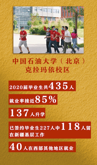 2020年7月7日,習(xí)近平給中國石油大學(xué)(北京)克拉瑪依校區(qū)118名畢業(yè)生回信,肯定了他們“奔赴新疆基層工作,立志同各族群眾一起奮斗,努力成為可堪大用、能擔(dān)重任的西部建設(shè)者”的人生選擇。
