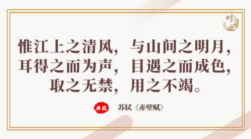 “惟江上之清風(fēng),與山間之明月,耳得之而為聲,目遇之而成色,取之無禁,用之不竭?!碧K軾的這份情懷,正是今人所欠缺的,也是最為珍貴的,生不帶來,死不帶去。想通這個(gè)道理,就一定能夠以身作則、以上率下,以清廉養(yǎng)浩然正氣。