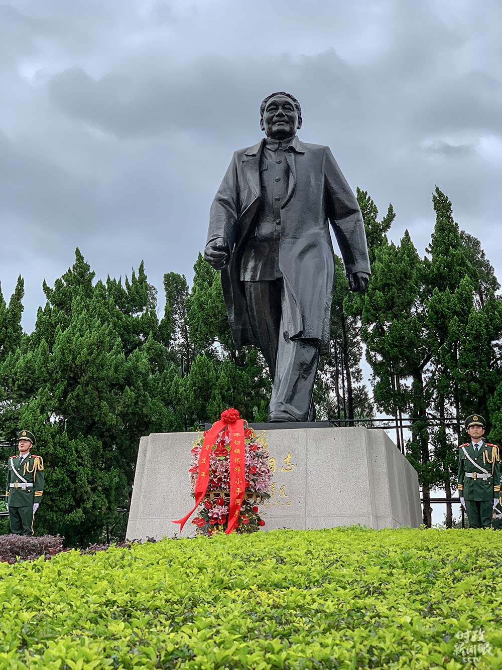 △總書記當(dāng)天向鄧小平銅像敬獻花籃。(總臺央視記者段德文拍攝)