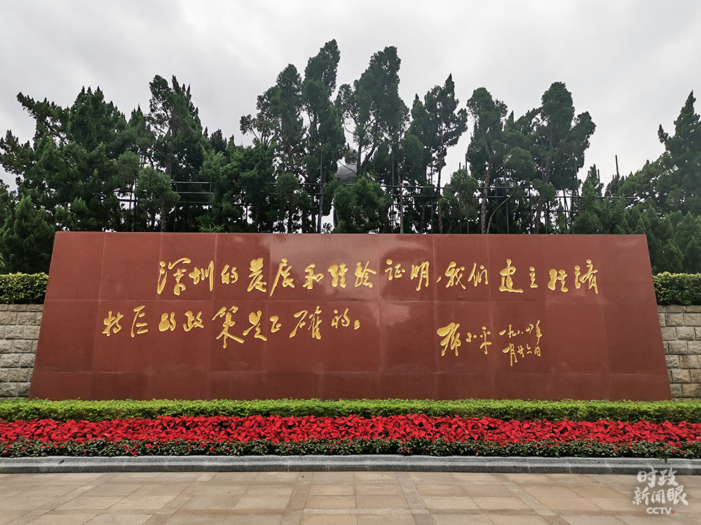 △鄧小平銅像北側(cè)是一塊長達13米、高4.35米的花崗巖石墻,石墻北面鐫刻著鄧小平同志1984年視察深圳時的題詞:“深圳的發(fā)展和經(jīng)驗證明,我們建立經(jīng)濟特區(qū)的政策是正確的?!保偱_央視記者王冰拍攝)