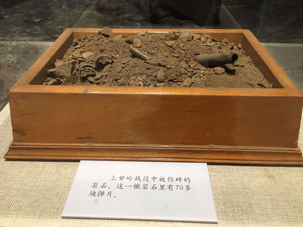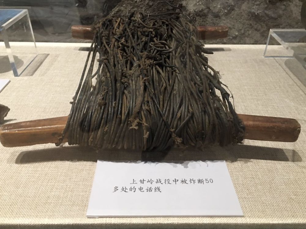 在軍博的主題展覽“血戰(zhàn)上甘嶺”展區(qū),幾件戰(zhàn)場實物似乎還能讓人聞到當年的殘酷硝煙:一截嵌滿彈片的枯樹干,一堆摻雜著彈片的碎石焦土,被炸斷50多處的200多米電話線……