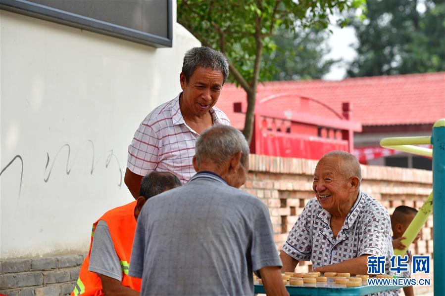 河南蘭考東壩頭鄉(xiāng)張莊村的幾位老人在下象棋(2018年6月20日攝)。新華社記者 馮大鵬 攝