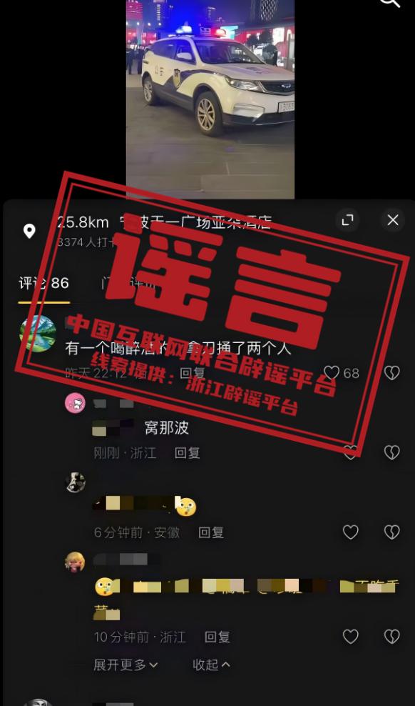 辟謠:“寧波天一廣場(chǎng)有醉酒人員持刀捅兩人”系謠言