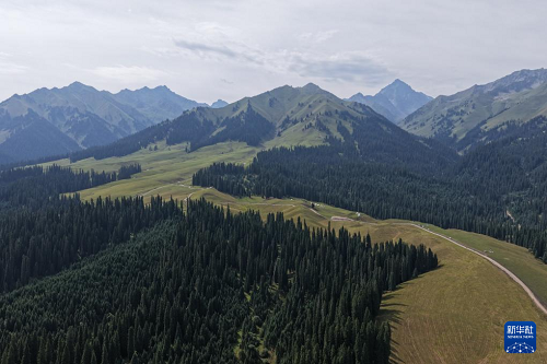 這是8月2日在庫爾德寧拍攝的雪嶺云杉(無人機(jī)照片)。(新華社記者 趙宇思 攝)