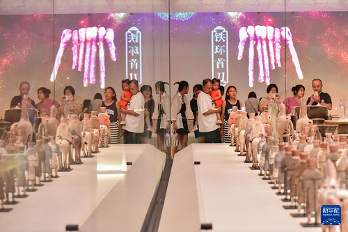 8月2日,家長帶著小朋友在山東省青州博物館參觀。(新華社發(fā) 王繼林 攝)