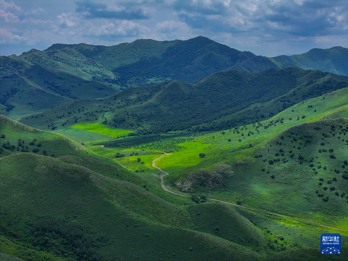 這是7月28日拍攝的內(nèi)蒙古通遼市扎魯特山地草原美景(無人機(jī)照片)。(新華社記者 連振 攝)