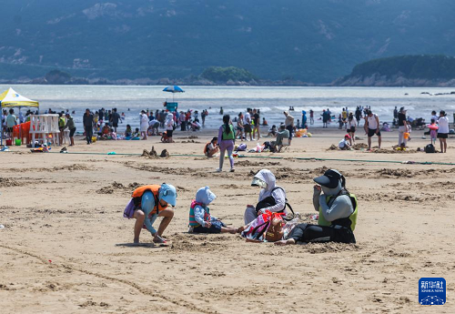 8月12日,游客在朱家尖南沙景區(qū)的海灘上游玩。(新華社記者 徐昱 攝)