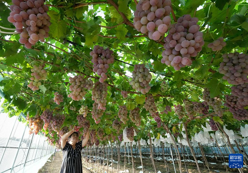 8月12日,河北省盧龍縣蛤泊鎮(zhèn)鮑子溝村一家葡萄種植合作社社員在采摘葡萄。(新華社記者 楊世堯 攝)