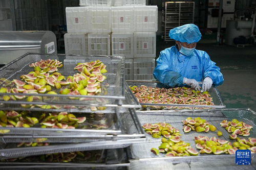 8月24日,在新泰市龍廷鎮(zhèn),一家食品加工企業(yè)的工作人員在生產(chǎn)加工無花果果干。(新華社記者 徐速繪 攝)