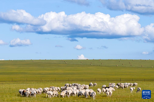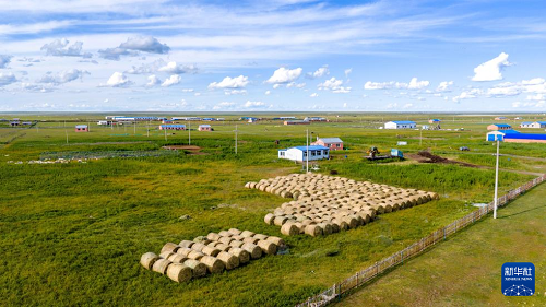 初秋時節(jié),內(nèi)蒙古呼倫貝爾大草原草色漸黃。在遼闊的草原上,牧民將豐收的牧草捆扎成卷,成群的牛羊、馬匹漫步其間,勾勒出一幅祥和美麗的秋日豐收圖景。