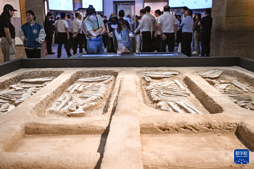 這是8月28日拍攝的展覽中的車馬坑模型。(新華社記者 陳鐘昊 攝)