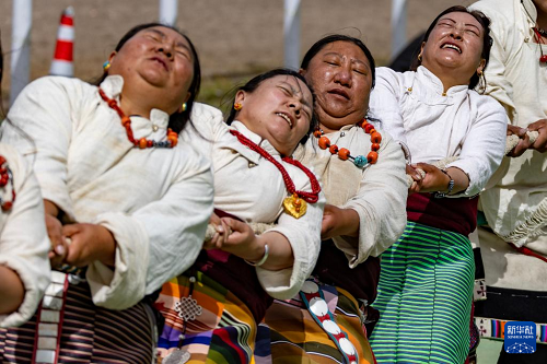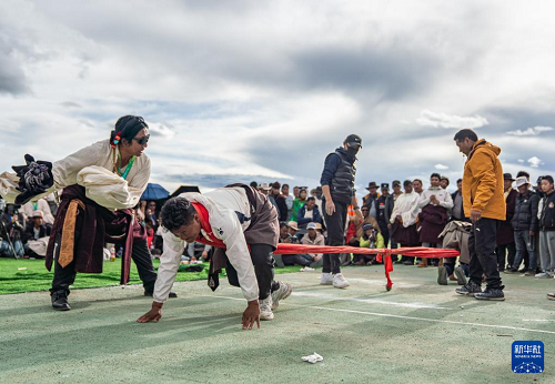 9月6日,在那曲市恰青賽馬節(jié)現(xiàn)場,選手們參加押加比賽。(新華社記者 丁增尼達(dá) 攝)