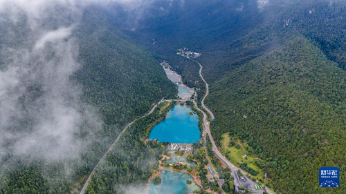 藍(lán)月谷位于云南省麗江市玉龍雪山東麓甘海子以北、云杉坪南側(cè)的山谷之中。9月,藍(lán)月谷湖水充盈清澈,如同一顆顆藍(lán)寶石鑲嵌在山谷之中,吸引游客前來(lái)參觀游覽。