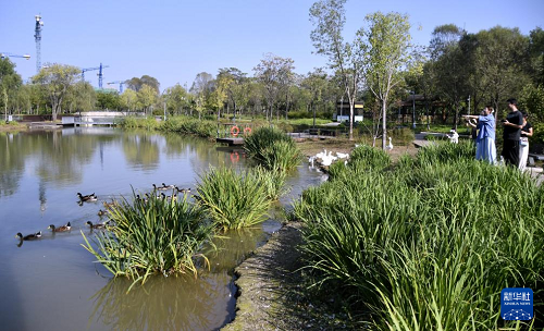這是環(huán)境優(yōu)美的順義區(qū)后沙峪鎮(zhèn)溫榆河公園(9月24日攝)。(新華社記者 李欣 攝)