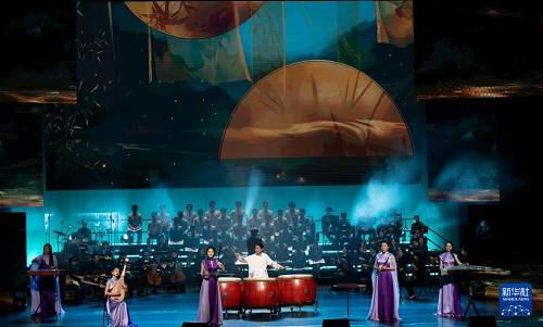 12月16日,在北京二七劇場舉辦的“中國夢·勞動美”2026新年音樂會上,演員表演民樂合奏《錦繡畫卷》。(新華社記者 才揚 攝)