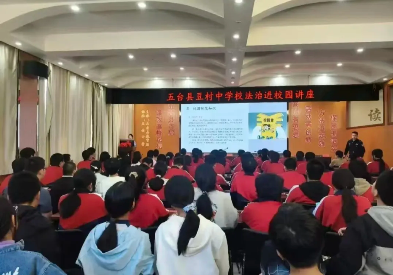 為切實提升青少年法律意識與自我保護(hù)能力,重點強(qiáng)化對電信網(wǎng)絡(luò)新型違法犯罪的識別防范能力,守護(hù)學(xué)生財產(chǎn)安全,9月24日,五臺縣檢察院聯(lián)合縣公安局、豆村派出所、彩虹禁毒大隊、縣社區(qū)戒毒社區(qū)康復(fù)服務(wù)中心,共同走進(jìn)豆村中學(xué)開展法治宣講活動,為全校師生送上一份“法治大禮包”。