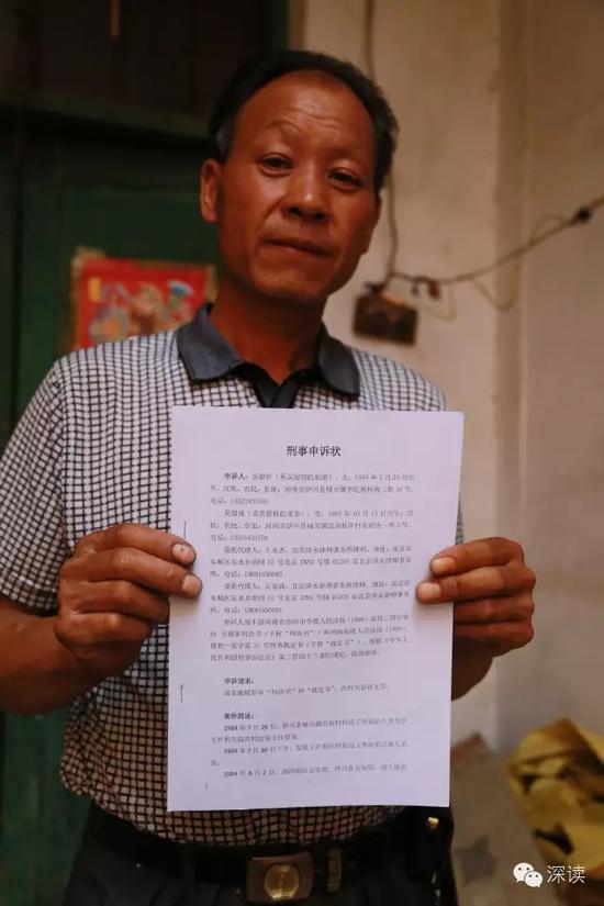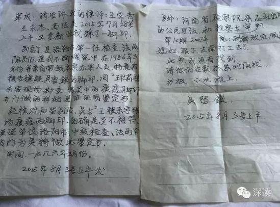 檢察院通知書 一個(gè)在看守所和監(jiān)獄度過(guò)31年的男子;一個(gè)父母先后離去而無(wú)法送終的兒子;一個(gè)從30歲到61歲還在申訴的服刑者······他的名字叫吳留鎖。 在河南洛陽(yáng)伊川縣城關(guān)鎮(zhèn)邑澗村吳留鎖的老家,吳留鎖的家屬對(duì)“深讀”稱,希望能早日給予吳留鎖一個(gè)公正的說(shuō)法。同時(shí),家屬提供了吳留鎖從獄中寄回的幾封家書。 2016年3月15日,“深讀”通過(guò)河南省人民檢察院發(fā)布的《刑事申訴中止審查通知書》獲悉,河南省人民檢察院于2016年2月25日受理吳留鎖故意殺人案的申訴,但因河南省高級(jí)人民法院對(duì)原判決、裁定調(diào)卷審查,檢察院決定中止審查,待中止的原因消除后,立即恢復(fù)審查。 被超期羈押 14年等來(lái)死緩判決 吳留鎖是河南省洛陽(yáng)市伊川縣城關(guān)鎮(zhèn)邑澗村一農(nóng)民,1984年7月29日,邑澗村8歲男童王社利被人殺害。兩個(gè)月后,吳留鎖被認(rèn)定為兇手遭遇刑事拘留。 5個(gè)月后,1984年12月8日,河南洛陽(yáng)地區(qū)中院認(rèn)定:吳留鎖因雞奸幼童未遂而殺人滅口,手段殘忍,罪行特別嚴(yán)重,且其刑滿釋放不到3年為累犯,判處吳留鎖死刑。吳留鎖提出上訴。 1985年4月13日,河南省高級(jí)人民法院以“事實(shí)不清,證據(jù)不足”為由將案件發(fā)回重審。 此后,由于一直沒有新的證據(jù),吳留鎖就一直被羈押在看守所。 轉(zhuǎn)眼間14年過(guò)去,由于吳留鎖案被媒體相繼報(bào)道,1998年12月15日, 吳留鎖終于再次等來(lái)了一審判決,他被洛陽(yáng)市中級(jí)人民法院判處死刑緩期兩年執(zhí)行。 一年后的1999月12日,河南省高級(jí)人民法院核準(zhǔn)了洛陽(yáng)市中級(jí)人民法院的死刑緩期兩年執(zhí)行的判決。 此后,吳留鎖開始了漫長(zhǎng)的服刑生活。一晃兒15年過(guò)去,吳留鎖從一個(gè)30歲的青年變成了年近60歲的老人。 吳留鎖在獄中一直不認(rèn)罪,因此沒有獲得減刑。也正是他一再堅(jiān)持申訴,終于使案情有了轉(zhuǎn)機(jī)。 2015年5月6日,吳留成和律師王永杰、王常清把吳留鎖在獄中寫的申訴書遞交到洛陽(yáng)市檢察院控申部門。 2016年2月25日,河南省檢察院受理了吳留鎖故意殺人罪一案的申訴。 2016年3月15日,因河南省高級(jí)人民法院對(duì)原判決、裁定調(diào)卷審查,檢察院決定中止審查。 寄家信喊冤 母親每次聽信哭幾天 “吳留鎖剛失去自由的時(shí)候,因?yàn)榧依锔械桨l(fā)生了這種事丟人,再加上弟弟們還小,沒有能力處理此事,只有老母親去看看他,但是看守所沒讓見?!眳橇翩i的姐姐吳留珍對(duì)“深讀”說(shuō)。 吳留鎖的家屬雖然沒去看他,但還是在經(jīng)濟(jì)極其困難的情況下,給吳留鎖每月送去幾十元的生活費(fèi)。 “法院開庭的時(shí)候,沒有通知我們,我們不知道,吳留鎖判刑被送到監(jiān)獄沒多久,就給家里寫來(lái)了信?!眳橇粽浠貞?。 “那個(gè)時(shí)候距離吳留鎖被抓已經(jīng)過(guò)去了十幾年,我們都大了,每隔十天半月就能接到哥哥從獄中寫來(lái)的信。他在獄中一直喊冤,讓我們?cè)谕饷嫣嫠慈ド砩系脑┣?。因?yàn)槲覀兌际寝r(nóng)村人,沒有什么文化,所以不知道該怎么辦?!眳橇粽湔f(shuō)。 “每接到信,剛開始還念給母親聽聽,母親聽了就會(huì)哭幾天。后來(lái)就不敢念給她聽了。因?yàn)榧依锏臈l件不好,這些信好多沒有保留下來(lái)?,F(xiàn)在只有這幾封。想想哥哥30多年從青年到老年,都是在監(jiān)獄里度過(guò)的,我們?cè)趬?mèng)里都會(huì)哭醒。有誰(shuí)能理解他心中的苦呢?!眳橇翩i的弟弟吳留成流著眼淚說(shuō)。 吳留鎖被抓后,再?zèng)]獲準(zhǔn)回過(guò)家,父母兩人未等到吳留鎖被“放出來(lái)”,先后離世。 “發(fā)回重審后,吳留鎖仍被判死緩,母親知道后,受到很大打擊。記得哥哥被送到監(jiān)獄服刑不久,老人去探望過(guò)兩次。探監(jiān)時(shí),母親親口問我哥哥:‘是不是你干了這種見不得人的事?’我哥說(shuō):‘不是。’”吳留成哽咽著說(shuō) 向家中寄的第一封信是申訴狀 “深讀”留意到,吳留鎖的家屬共保存了6封吳留鎖的獄中來(lái)信,最早的是2003年,最晚的是2015年11月22號(hào)。 因?yàn)闅q月久遠(yuǎn),最初的信紙已發(fā)黃,但字跡還是能看清。 “深讀”發(fā)現(xiàn),吳留鎖給家中寄的第一封信是“申訴狀”。 信中寫到,1984年9月21日,銀川縣公安局將吳留鎖抓捕,同年12月8號(hào)被判處死刑,1985年6月26號(hào),省高院因犯罪事實(shí)不清,證據(jù)不足撤銷原判,發(fā)回重審。 發(fā)回重審后,洛陽(yáng)市接管了此案,并和尹川縣相關(guān)部門的法醫(yī),重新對(duì)吳留鎖的腳印和王社利被殺害現(xiàn)場(chǎng)勘查筆錄中的痕跡腳印比對(duì),最終結(jié)果為:兩腳印完全是互不相符。 信中指出,銀川縣公安局抓捕吳留鎖的主要原因是有前科,并且吳留鎖在公安局遭到了刑訊逼供。 “這封信是哥哥怕家里不會(huì)寫申訴狀,寫好后讓我們代他遞交到有關(guān)部門的。”吳留成說(shuō)。 寫這封信的時(shí)候,距離吳留鎖被抓已近20年。 “過(guò)去郵一封信才八分 現(xiàn)在一塊二” 吳留鎖寫給家人的第二封信透出了深深的絕望。 信中寫道:“弟我現(xiàn)在是個(gè)深陷泥潭的人,幾乎成了一個(gè)廢人,眼睛也看不清,真假錢也不分,假如我回家