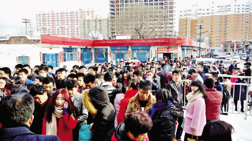 2月13日,一場大雪讓五寨縣火車站變得擁擠起來。當(dāng)日是春節(jié)假日的最后一天,不少回家過年的外地工作者返程,恰巧前一天縣城迎來一場大雪,造成公路交通不便,使得更多的人選擇了乘火車返程。但臨時(shí)改變出行方式讓這些人很難買到票。(許凈 攝)