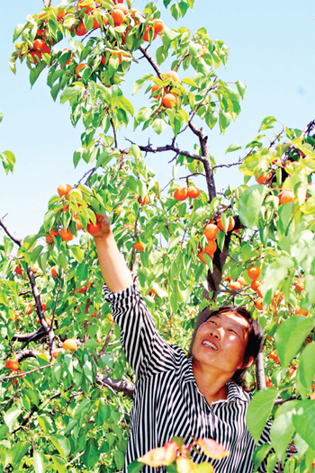 6月15日,原平市新華街村農(nóng)民正在自家杏園采摘,準(zhǔn)備銷往市場。原平市大力發(fā)展一村一品水果種植業(yè),促進了農(nóng)民增收。(趙月仁 攝)