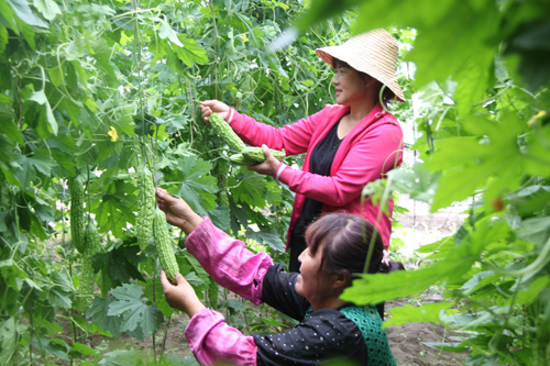 7月16日,原平市新原鄉(xiāng)解放街村菜農(nóng)管仲衛(wèi)蔬菜種植基地,員工們正在采摘長(zhǎng)勢(shì)喜人的苦瓜,老管種植蔬菜已有30多個(gè)年頭,近年來(lái)他每年種植和育苗六個(gè)系列40多個(gè)品種蔬菜,成為了遠(yuǎn)近聞名的種植大戶和種植能手,并且成為當(dāng)?shù)厥卟朔N植的帶頭人,有效地促進(jìn)了增產(chǎn)增收共同致富,鼓起了他們的錢(qián)袋子。(趙春曉 攝)