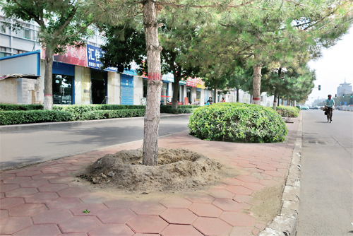 近日,記者途經(jīng)城區(qū)長征西街建設(shè)路口時(shí),發(fā)現(xiàn)在道路北側(cè)的綠化帶內(nèi),有的行道樹樹坑只是用土堆進(jìn)行了簡單的堆砌,時(shí)值秋雨多發(fā)時(shí)期,在雨天極易造成一定程度的水土流失。希望市政管理部門能夠引起重視,早日為樹坑穿上一件“金鐘罩”。(王君 攝) (責(zé)任編輯:李冬梅) |