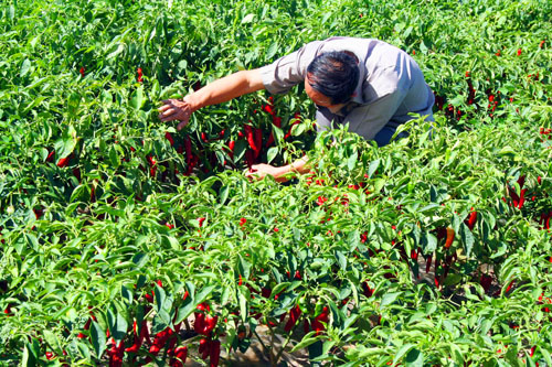 9月1日,原平市南灘村農(nóng)民武金雙正在管理種植的北京紅辣椒。該村調(diào)整產(chǎn)業(yè)結(jié)構(gòu),由原來種植玉米地,如今引進種植了新品種北京紅辣椒長勢喜人,又是一個豐產(chǎn)年,促進了農(nóng)業(yè)增產(chǎn),農(nóng)民增收,他們?nèi)缃竦纳罹拖窦t辣椒一樣過的紅紅火火。(趙春曉 攝) (責(zé)任編輯:李冬梅) |