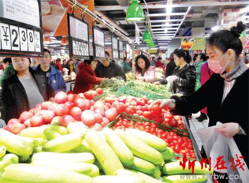 11月18日,原平市市民正在超市挑選各種新鮮蔬菜。該市大力發(fā)展高效設(shè)施農(nóng)業(yè)大棚蔬菜種植業(yè),使市民們一年四季吃上了鮮菜,同時也增加了農(nóng)民收入。(趙春曉 攝)