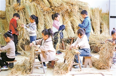 近日,江蘇如皋經(jīng)濟(jì)技術(shù)開(kāi)發(fā)區(qū)實(shí)驗(yàn)幼兒園的小朋友在學(xué)習(xí)編草簾。大雪節(jié)氣剛過(guò),該園開(kāi)展知民俗,弘揚(yáng)傳統(tǒng)文化活動(dòng),教師帶領(lǐng)小朋友走進(jìn)田野,學(xué)習(xí)用秸稈編織草繩、草簾,用于包裹過(guò)冬果樹(shù)。