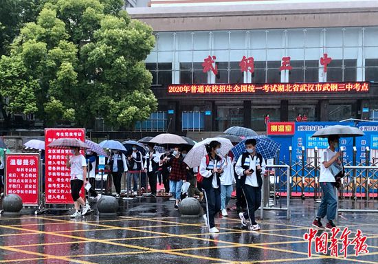 7月7日上午,湖北省武漢市武鋼三中考點,語文考試結(jié)束后,考生們陸續(xù)走出考場。中青報·中青網(wǎng)記者 朱娟娟/攝