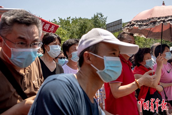 7月7日上午,北京市第八十中學門口,高考語文考試結(jié)束后,等待考生的家長們。中青報·中青網(wǎng)記者 李雋輝/攝
