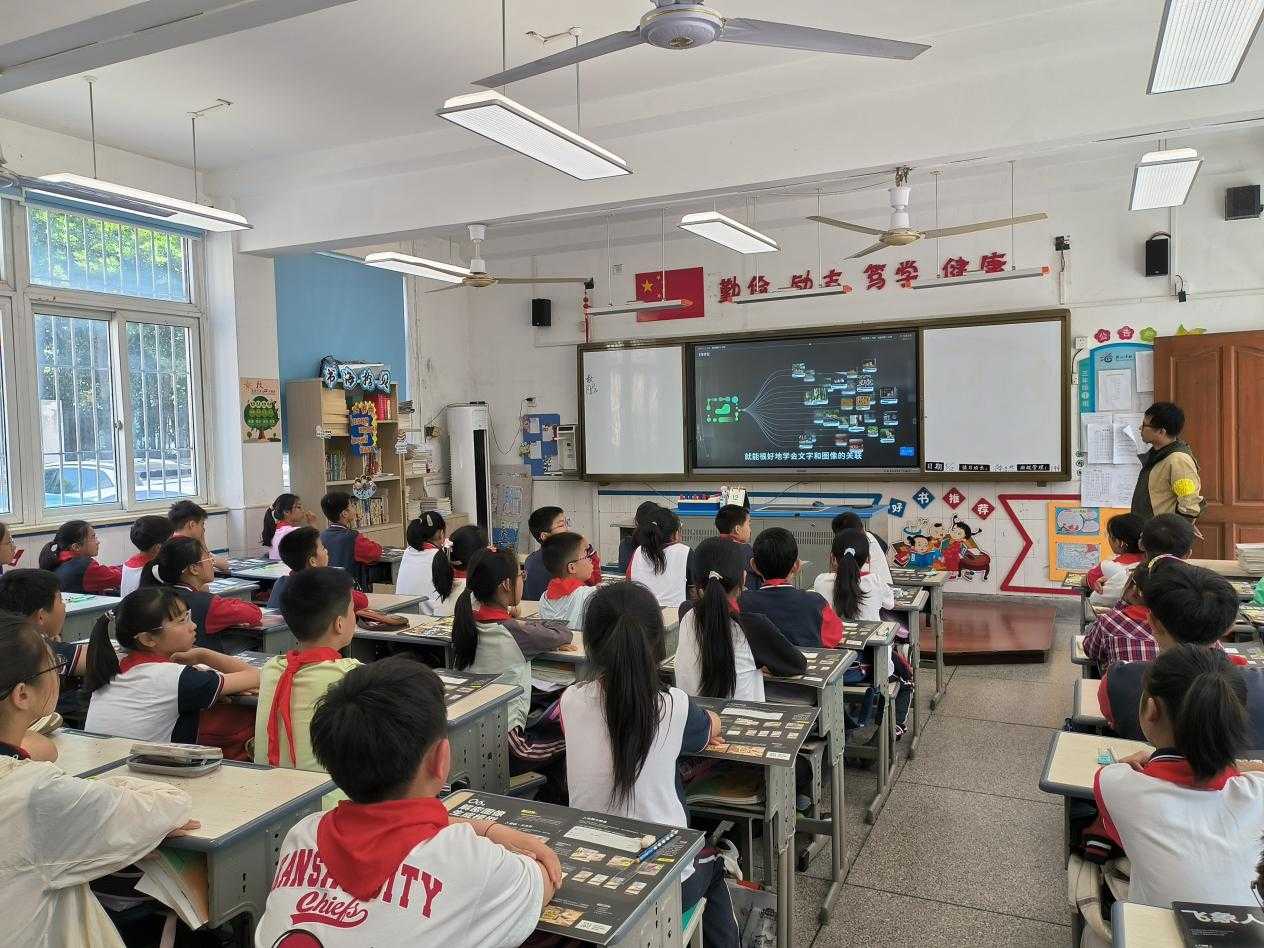 陳娟介紹,該校去年起引入“飛象人工智能通識(shí)課”,采用螺旋式進(jìn)階設(shè)計(jì),10門、160節(jié)分層進(jìn)階的課程體系,貫穿真實(shí)生活場景。記者現(xiàn)場看到,在“智能雙師”授課模式下,線上大屏的老師設(shè)計(jì)課程任務(wù),線下課堂老師把控課堂節(jié)奏,組織學(xué)生互動(dòng)討論,并對討論成果實(shí)時(shí)評(píng)價(jià)。