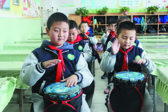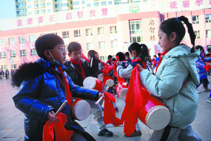 作為一種歷史悠久的傳統(tǒng)民族藝術(shù),腰鼓節(jié)奏歡快,鼓聲清脆悅耳。由孩子們展示這種藝術(shù)形式,更能張揚(yáng)出獨特的藝術(shù)性,同時練招式、講秩序,長知識、練思辨。由來自全校的100名學(xué)生組成的腰鼓隊是市實驗小學(xué)精心打造的一支規(guī)模相對較大的隊伍。董海燕老師是腰鼓隊的三位帶隊老師之一,還兼任198班的班主任,緊張的課堂教學(xué)之余,還要積極參與到教孩子們打腰鼓的第二課堂活動中,董老師說,下一步,學(xué)校準(zhǔn)備打造千人腰鼓隊,讓更多的孩子了解和掌握打腰鼓的技巧、技法,更好地弘揚(yáng)中華民族的傳統(tǒng)藝術(shù)。