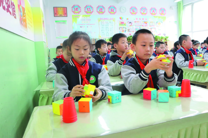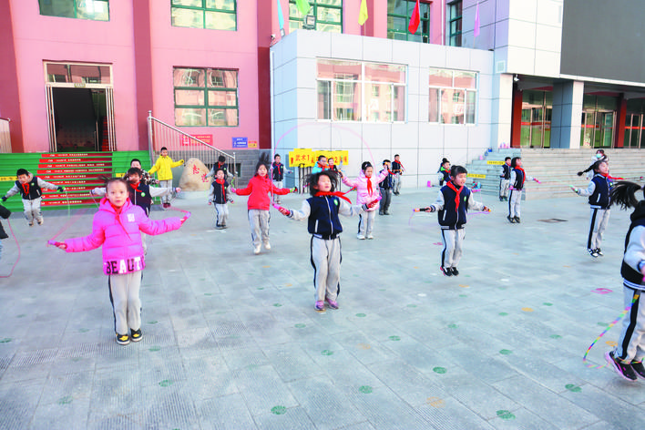 冬日暖陽下,忻州市實驗小學(xué)校園里一派生機(jī)勃勃的景象。武術(shù)訓(xùn)練場上,孩子們正在認(rèn)真扎馬步、練拳術(shù),一招一式打得虎虎生威,眼睛里閃爍著堅毅和自信的光芒。百人腰鼓隊排著整齊的隊伍,伴著音樂的節(jié)奏不停變換著步伐,鼓槌上的紅綢子上下舞動,看得人眼花繚亂?;ㄊ交@球挑戰(zhàn)籃球極限,展示籃球技術(shù)和表演的完美結(jié)合?;犹K中,孩子們在環(huán)擺的繩索中做著各種跳躍動作……操場上,熱火朝天,教學(xué)樓里,每一間教室里都散發(fā)著濃濃的趣味性?!耙黄惨晦?,書寫堂堂正正中國字”“編程要注意邏輯關(guān)系”“三原色是哪些顏色呢?”……這是市實驗小學(xué)每周三開展的第二課堂綜合實踐活動,也是孩子們最興奮最高興的校園時光。