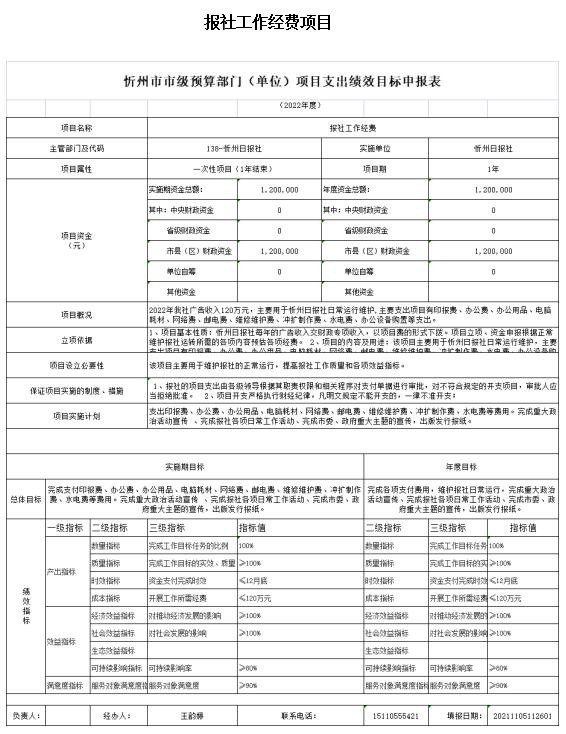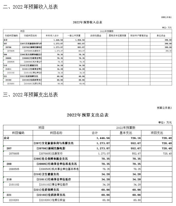 第二部分2022年度忻州日報社預算報表