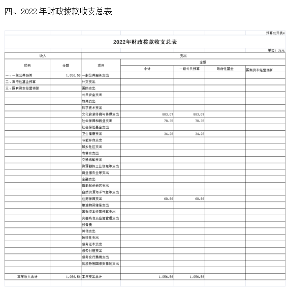 一、2022年預算收支總表