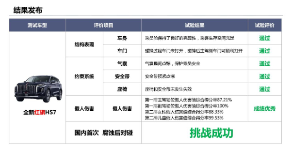 全新紅旗HS7成功通過腐蝕對(duì)碰挑戰(zhàn)并成為全國首個(gè)通過本次挑戰(zhàn)項(xiàng)目的車型,這一成績(jī)得益于一汽紅旗高品質(zhì)工藝。