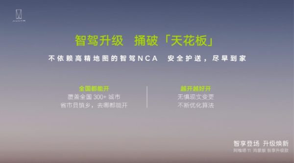 伴隨著阿維塔11鴻蒙版智享升級(jí)款的上市,阿維塔“去高精地圖化”智駕時(shí)代正式開啟,打破“按圖索驥”束縛,完美彌補(bǔ)當(dāng)下高精地圖智駕方案的不足并解鎖更多高頻智駕場(chǎng)景,城區(qū)NCA智駕功能即將一次性解鎖超過300個(gè)城市,帶來(lái)“全國(guó)都能開、 全國(guó)都好開”的出行體驗(yàn)。