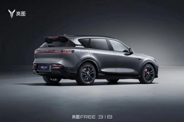 嵐圖FREE 318的車側(cè)與車尾也進(jìn)一步“黑化”,運(yùn)動(dòng)化輪圈內(nèi)還采用了紅色制動(dòng)卡鉗,此外,新車尾部激進(jìn)的尾翼也為整體視覺(jué)效果增色不少,給人很強(qiáng)的視覺(jué)質(zhì)感。