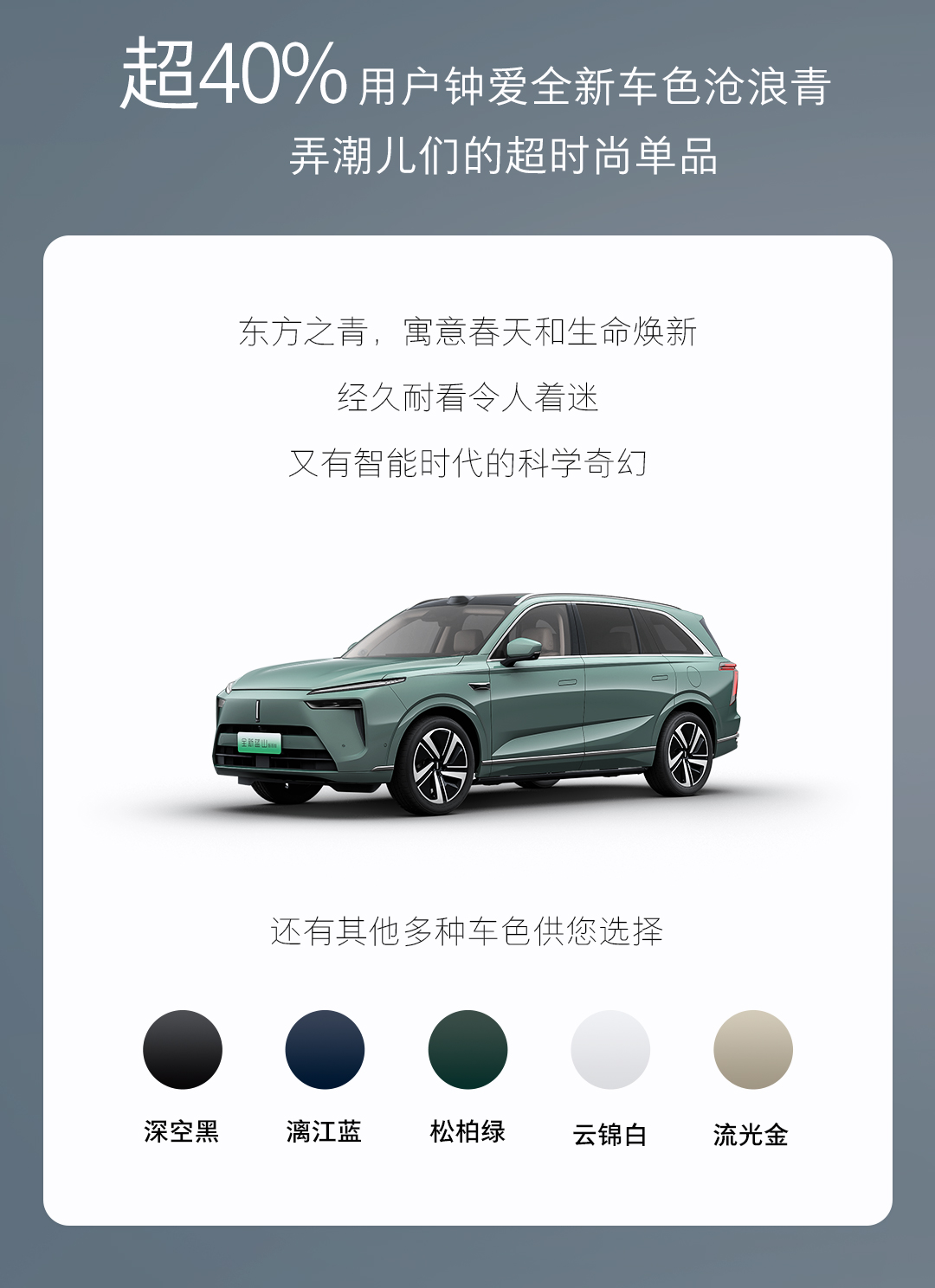 魏牌全新藍山不僅在智能配置上引領(lǐng)潮流,在外觀設(shè)計上同樣備受青睞。40.64%的用戶選擇全新車色“滄浪青”。“滄浪青”汲取赤道巨型海浪被陽光折射顯露的青色,給人無限的美妙的想象,在大自然的饋贈下,深度融合Coffee GPT靈感設(shè)計,這種獨特的藍色象征著春天的生命力,同時賦予車輛充滿未來科技感的視覺享受。