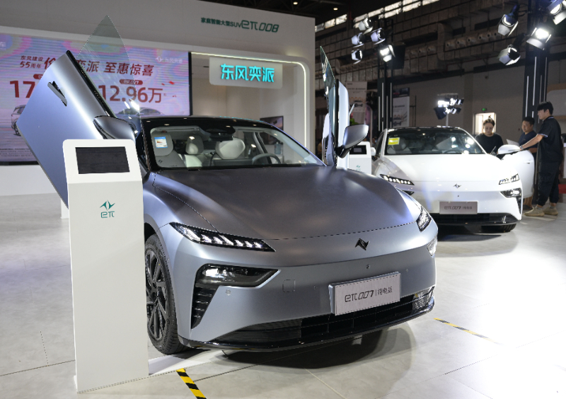 在車展上東風(fēng)奕派展臺拍攝的“eπ007”。(9月16日攝)新華社記者 蒲曉旭 攝