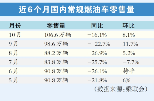 乘聯(lián)分會發(fā)布的數(shù)據(jù)顯示,今年10月常規(guī)燃油車零售106.6萬輛,環(huán)比增長8.1%。乘聯(lián)會秘書長崔東樹表示:“燃油車零售回暖是支撐車市整體向上的基礎之一,‘以舊換新’政策釋放的換購需求,更在一定程度上帶動燃油車銷量的增長。”值得注意的是,2025年補貼政策或仍將持續(xù),這對油車也是很好的提振銷量的機會。