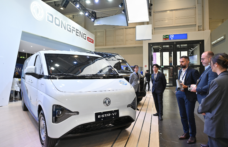 (資料圖片)2024年9月16日,在德國漢諾威國際交通運(yùn)輸博覽會(huì)媒體預(yù)展上,人們?cè)跂|風(fēng)汽車展區(qū)參觀E-STAR V7商用車。新華社記者 任鵬飛 攝