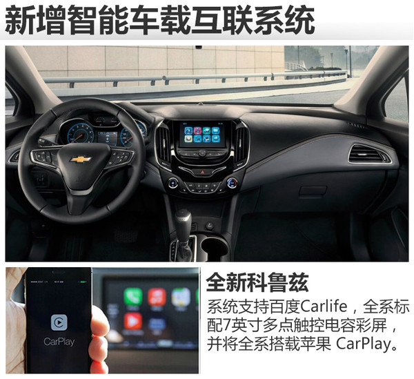 在配置方面,新車搭載了新一代MyLink智能車載互聯(lián)系統(tǒng),支持百度Carlife,全系標(biāo)配7英寸多點觸控電容彩屏,并將全系搭載蘋果 CarPlay。全新科魯茲還將新一代安吉星Onstar智能行車伙伴和4G LTE原裝集成車載Wi-Fi,可同時接入多個設(shè)備。